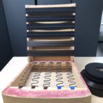 Alareunasta verhoilu naulattiin runkoon kiinni sekä aseteltiin ja viimeisteltiin oikeaan kireyteen, kiinnitettiin jalat ja laitettiin viimeistelyksi vielä pohjakangas. Kaunis katsella ja mukava istua. Sitähän se verhoilijan työ on – saada aikaan kaikin puolin mukava istumiskokemus!